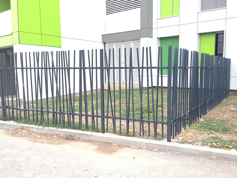 Les barreaux droits, irréguliers et aléatoires apportent un rythme visuel différent d’une clôture traditionnelle.