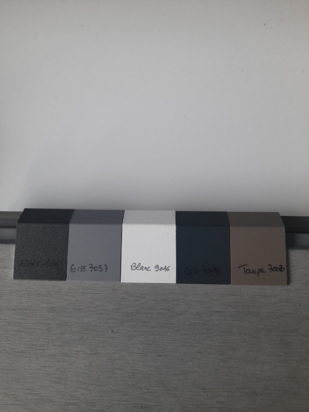 Coloris Blanc 901, Brun sablé 650, Galet 7037, Gris 7016, Noir sablé 100, Taupe 7006